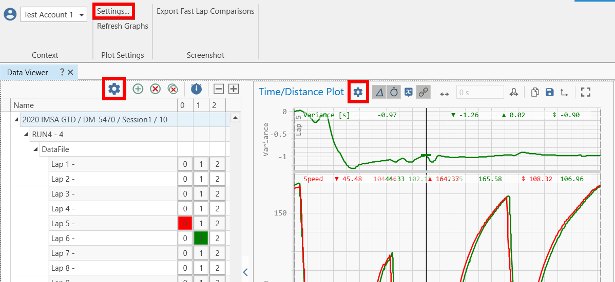 The Settings tab exposes the settings that control all plots in the Data Viewer.
