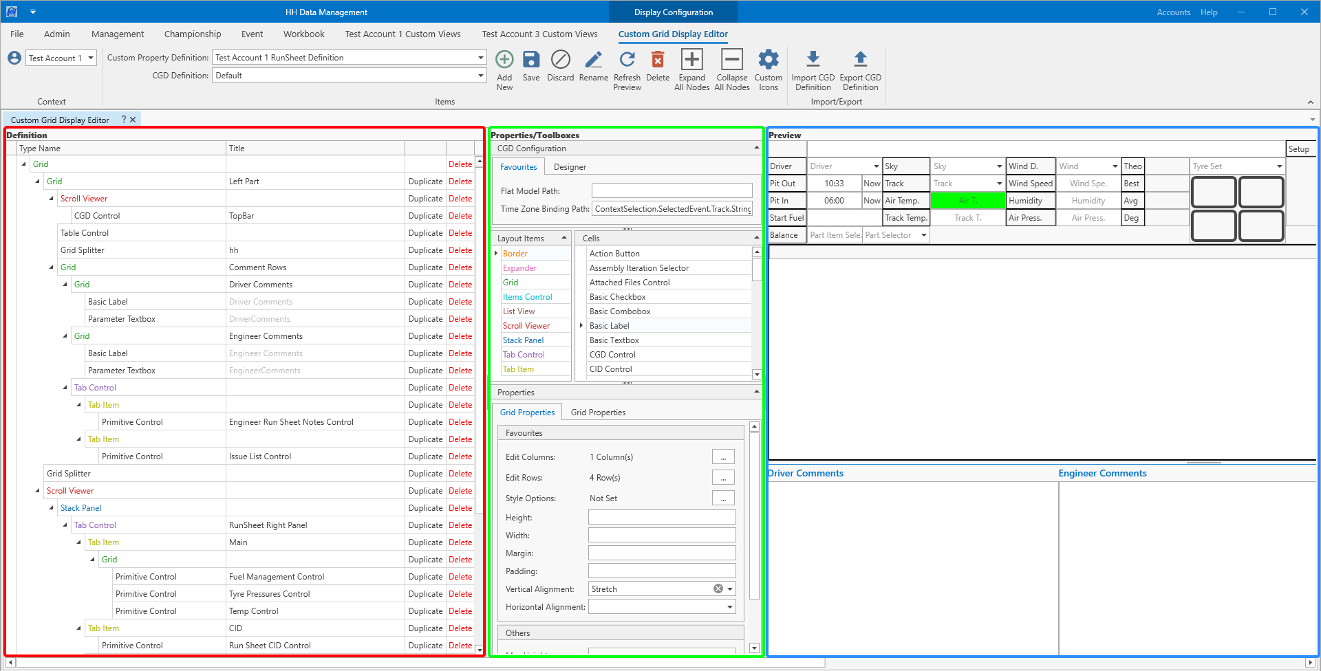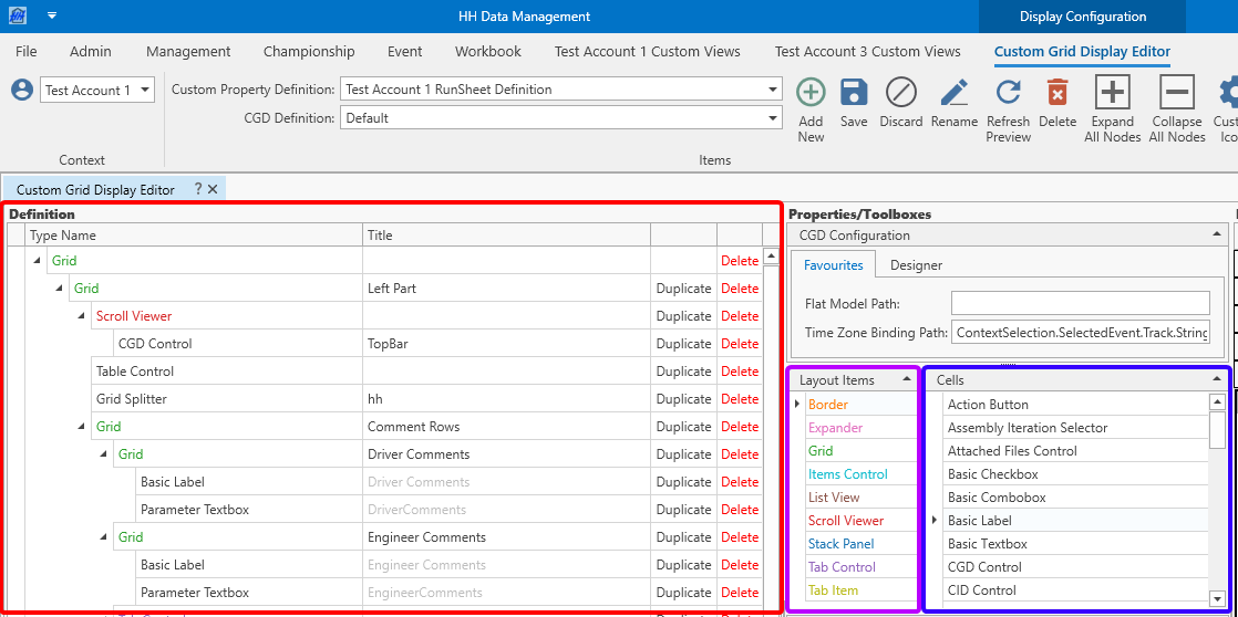 The structure and appearance of the CGD can be configured using the CGD definition editor.