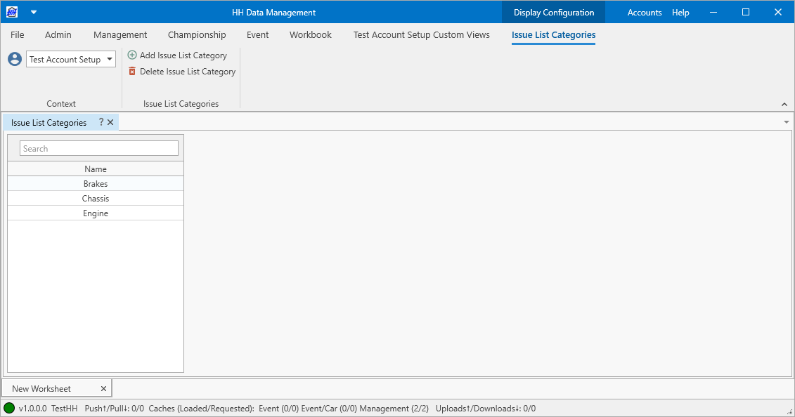 For both the job list and the issue list, the display consists of the category list with the option to Add or Delete a category: