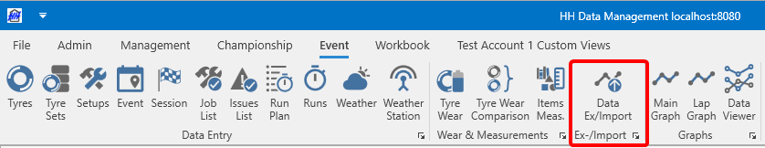 The main way to ex-/import data using a profile is using the Data Ex-/Import view. This can be accessed from the ribbon bar: