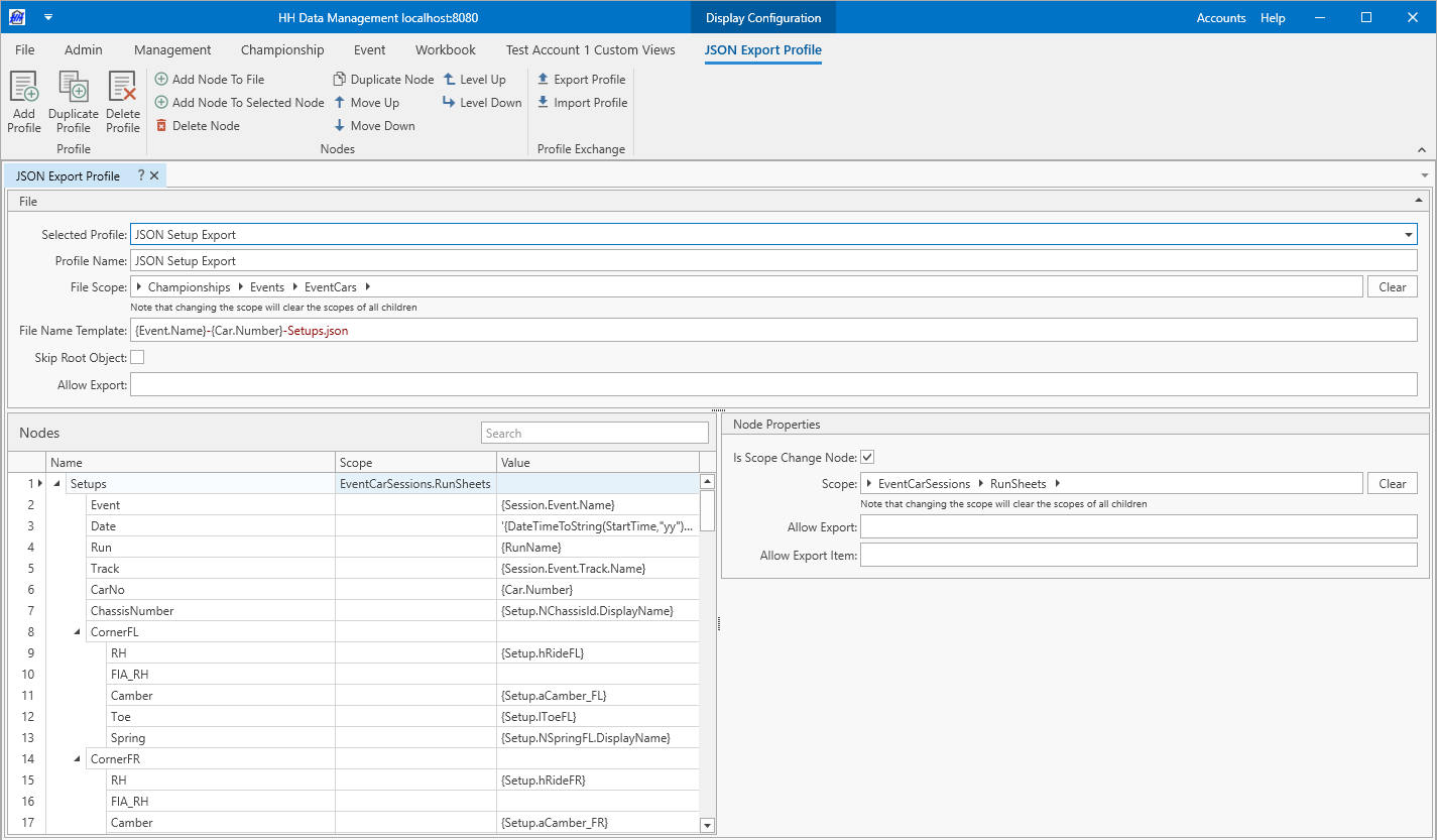 In this current example, the File Scope is Championships → Events → EventsCars. This means that a new file will be created for each car in each event that is selected for export.