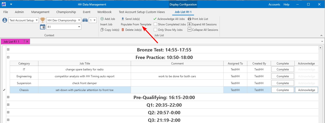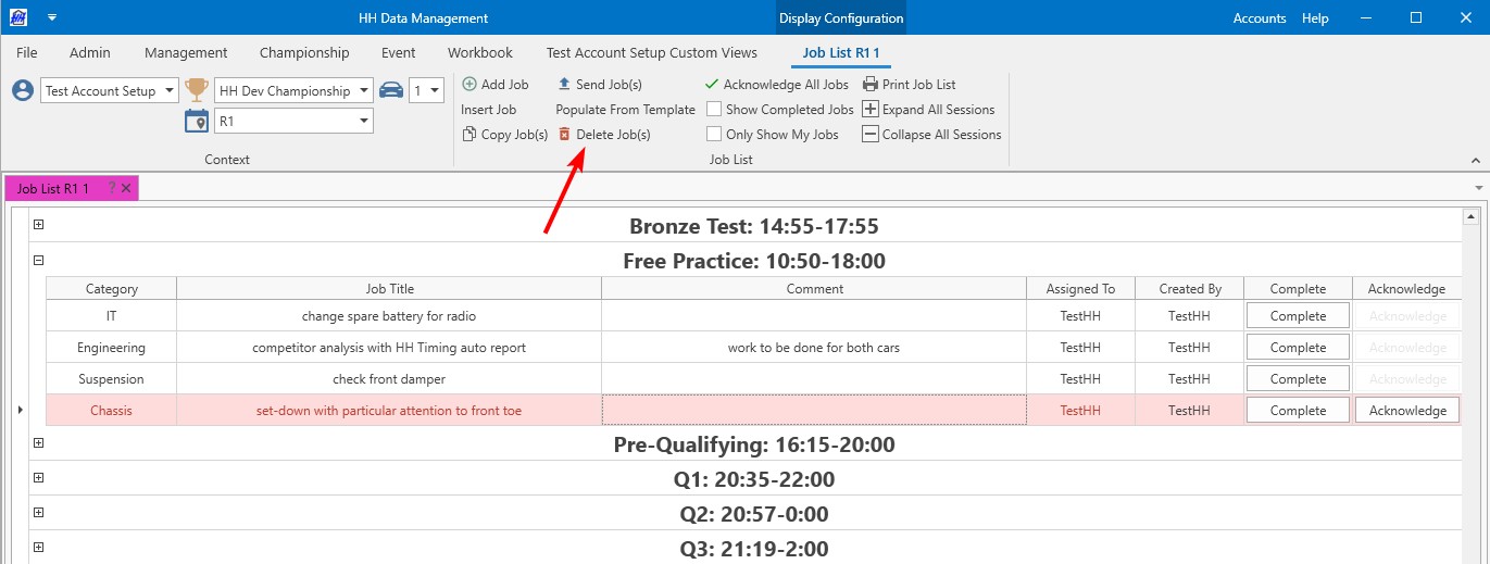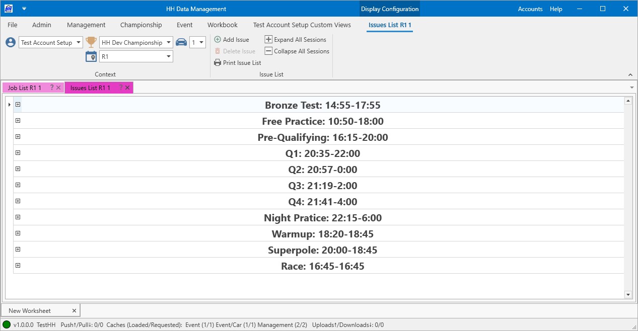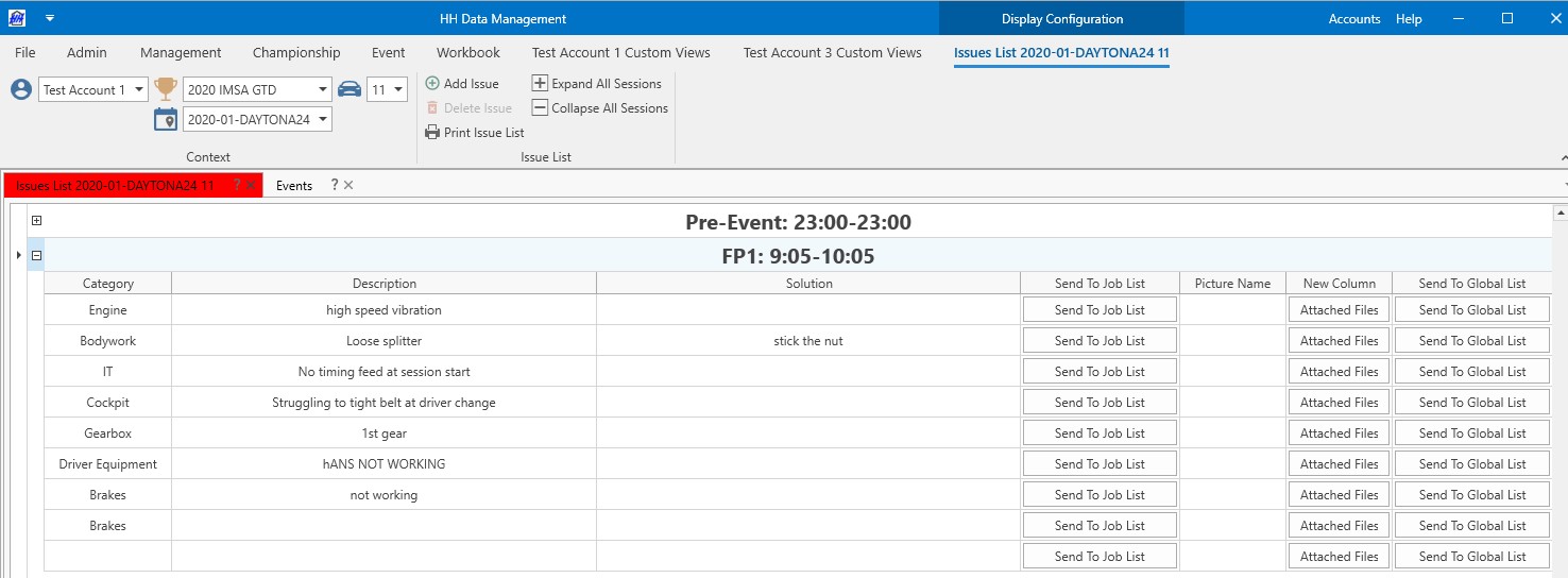 Job and issues list controls are depending on an event and a car. Then each job list or issue list is classified by sessions.