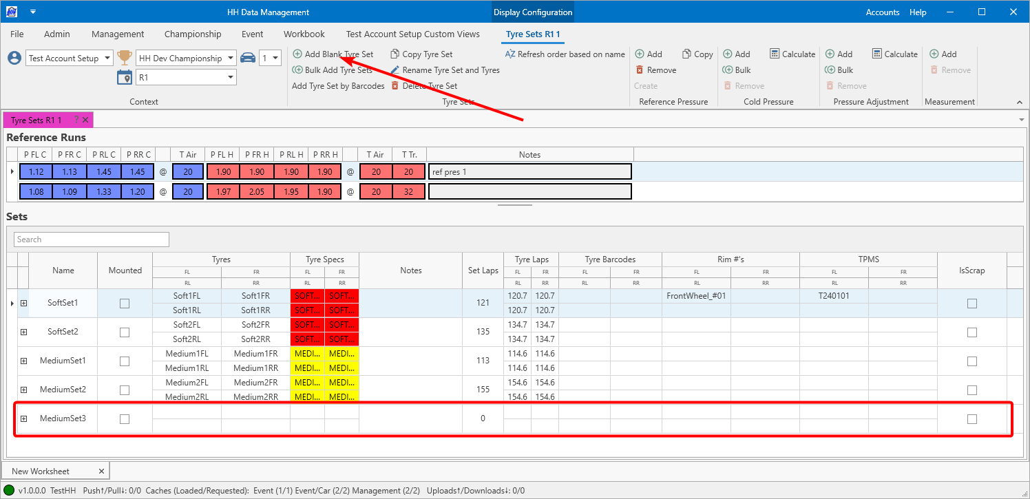 To add a tyre set click on Add Blank Tyre Set. A new row will appear at the bottom of the table.