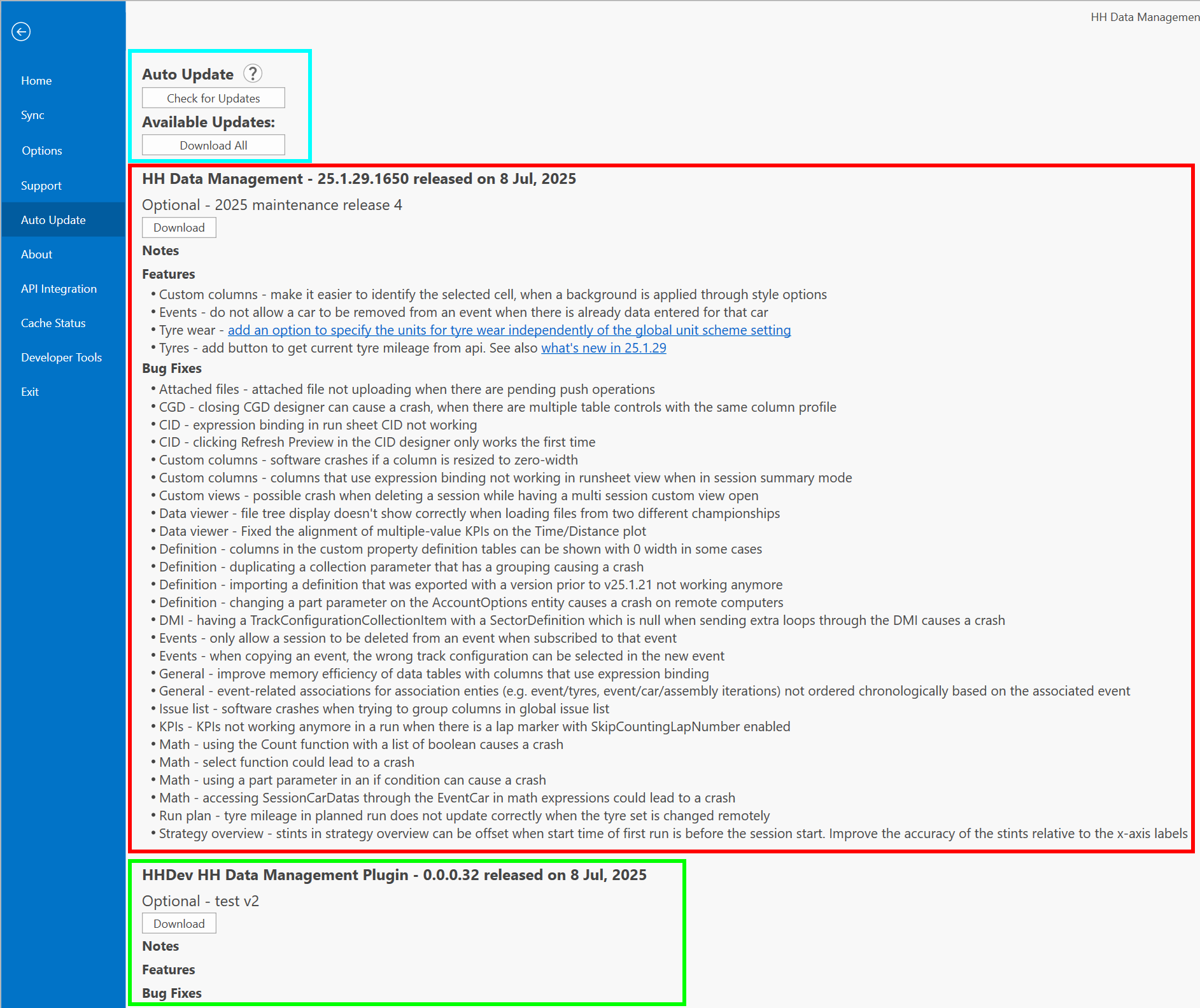After launching HH Data Management will automatically check for updates for both HH Data Management and any available plugins.
