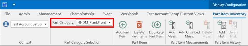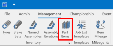Parts can also be managed using the Part Item Inventory View accessed from the Management tab of the ribbon bar:
