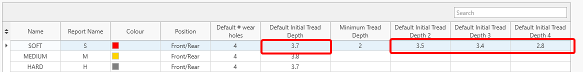 These settings only take effect for new tyres. Once a tyre is created an initial tyre wear measurement is added to the tyre and the number of default initial tread depth parameters can't be changed afterward anymore.