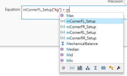 When writing a math expression, parameters from the current definition or other related definitions can be accessed and functions can be called to perform operations. Basic numerical, text and boolean operators are available.