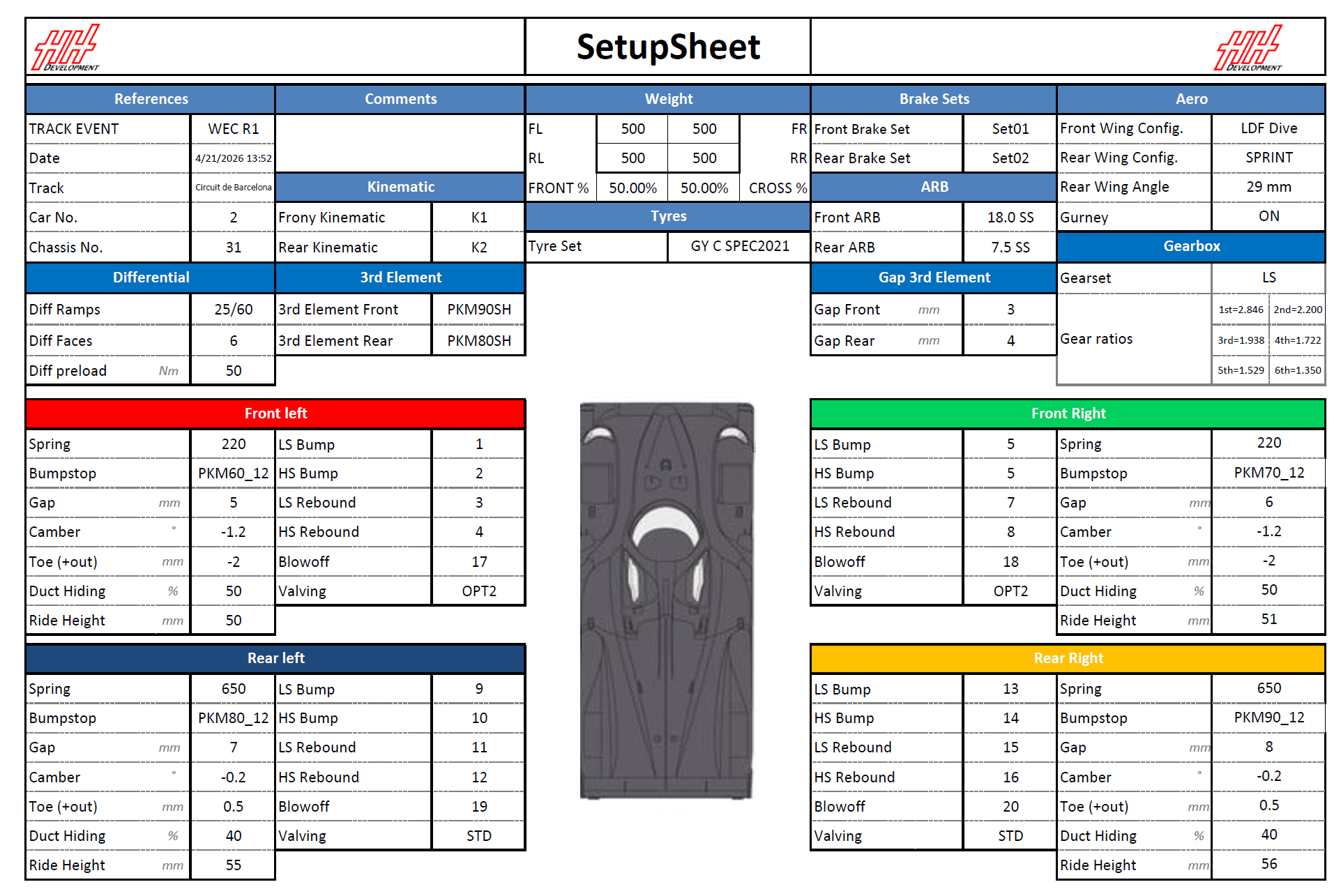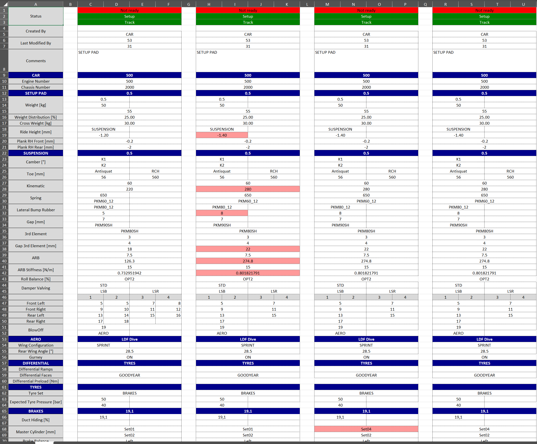 All setups from one Event and Car can be exported side-by-side.