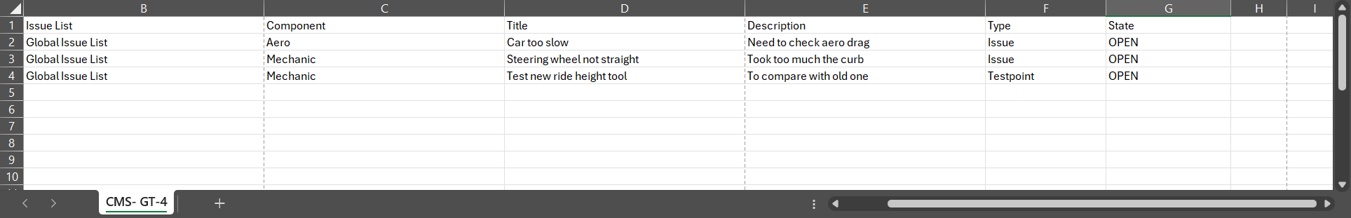 | Profile | Global issue list Excel profile |